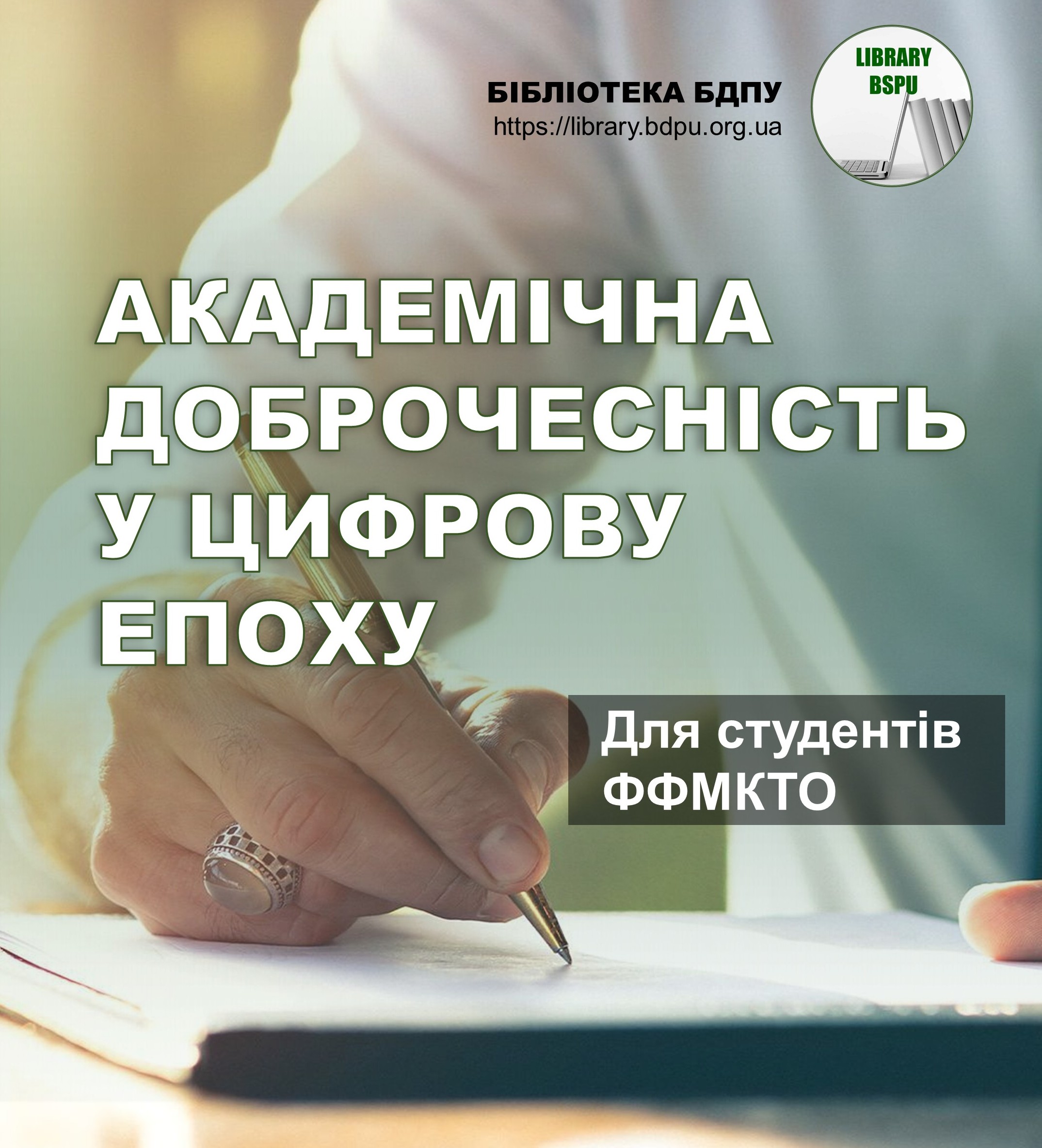 Академічна доброчесність в цифрову епоху Академічна доброчесність у 2025 році — це відповідальне, прозоре і етичне використання штучного інтелекту в освіті. Бібліотека БДПУ провела інформаційний захід для студентів і викладачів ФФМКТО, де представила нову політику університету щодо використання ШІ. Учасники дізналися про академічну етику, перевірку робіт на плагіат, відкриті ресурси та рекомендації щодо етичного застосування цифрових інструментів. Дивитись «Академічна доброчесність» 11.11.2025 |