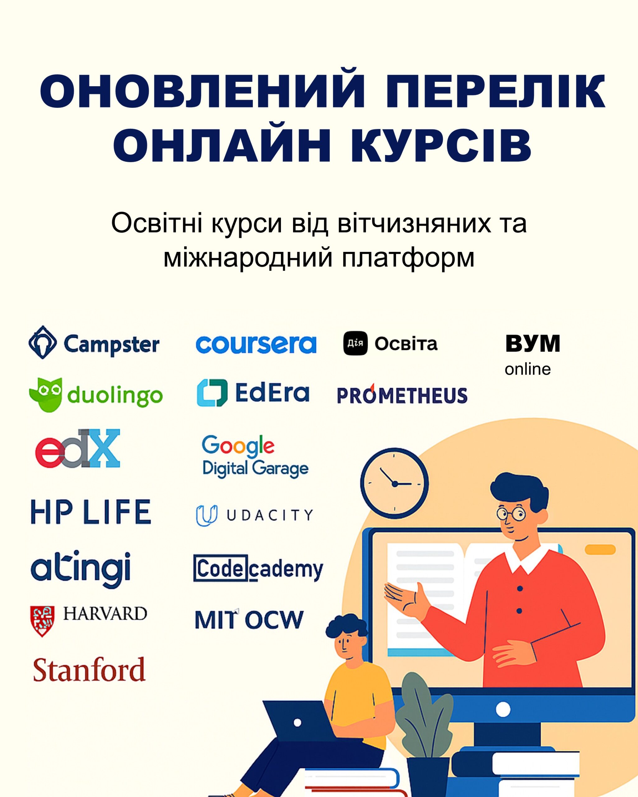 Онлайн-курси Оновлений перелік рекомендованих онлайн-курсів, які доступні безкоштовно або частково безкоштовно, з можливістю отримання сертифікатів. Ми зібрали платформи, що підтримують українську мову або мають україномовні курси, а також ресурси провідних університетів світу. 17.11.2025 |