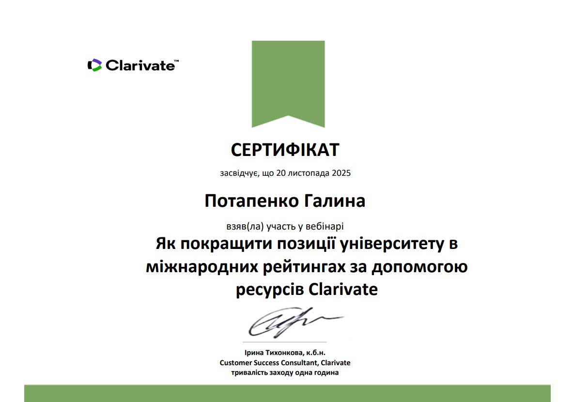 Як покращити позиції університету в міжнародних рейтингах за допомогою ресурсів Clarivate Ірина Тиханкова на вебінарі представила метрики ключових рейтингів та інструменти Clarivate. 26.11.2025 |