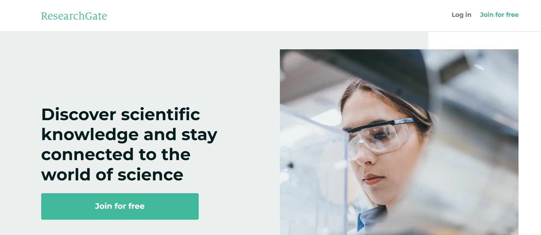 ResearchGate https://www.researchgate.net —це провідна безкоштовна соціальна мережа та платформа для співпраці науковців, яка об’єднує понад 25 мільйонів дослідників з усього світу. Платформа надає доступ до бази з понад 160 мільйонів сторінок наукових публікацій.
